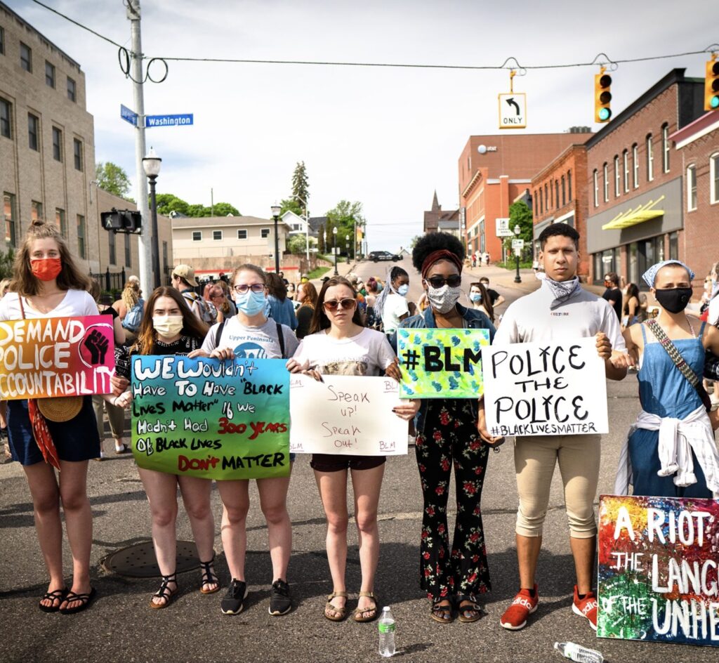 Social Justice For Us is uplifting the voices of marginalized people in Marquette County. In rural, predominantly white communities, it’s hard to organize any one group for underrepresented peoples, including but not limited to BIPOC, LGBTQIA+, and impoverished communities. Oppression is intersectional, so we have created a united front to fight against injustice and to promote education.
